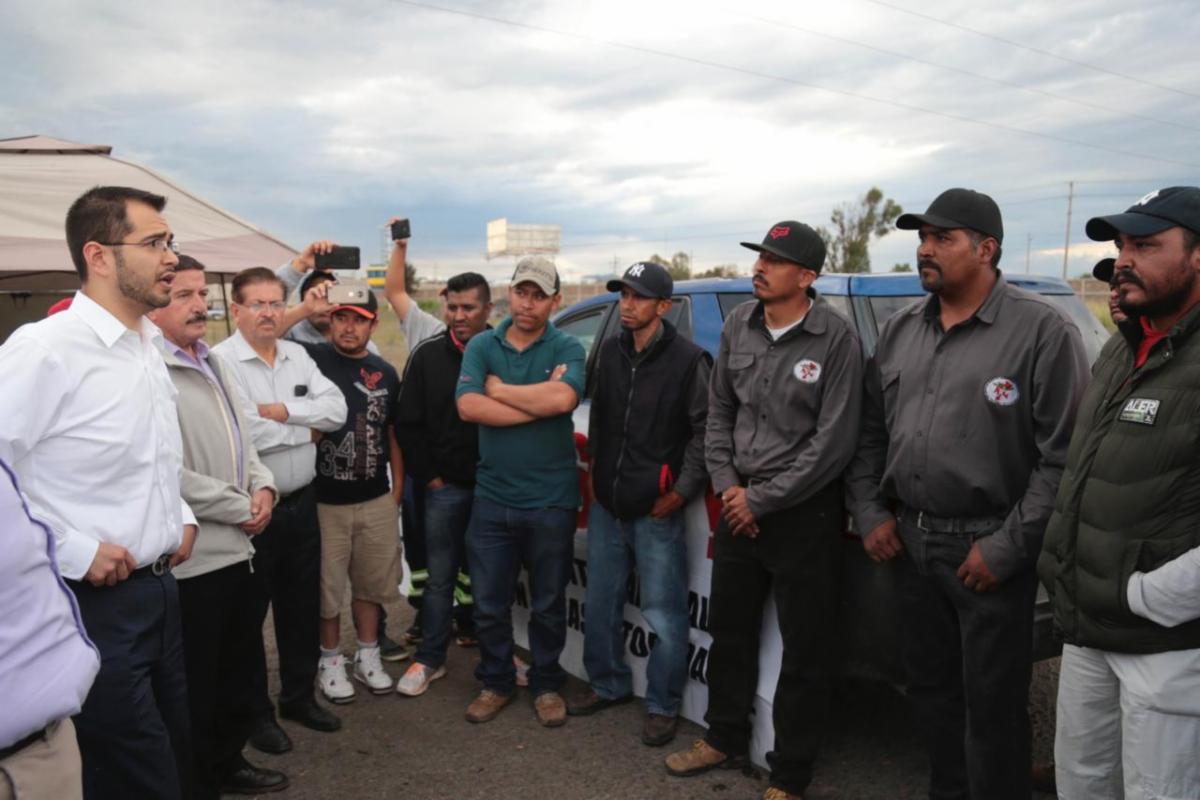 Calera, Zac.- Luego del bloqueo que se mantiene en la cervecera instalada en este municipio, el Secretario General de Gobierno, Jehú Eduí Salas Dávila, refrendó a los trabajadores del Sindicato Independiente el compromiso de generar una mesa de diálogo y conciliación, con la finalidad de que, conjuntamente con la empresa, encuentren puntos de coincidencia que les permitan finalizar con el conflicto laboral que protagonizan.