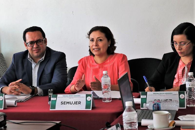 La sesión se efectuó en el Centro de Justicia para las Mujeres, donde la fiscal especializada de Atención de Delitos Contra las Mujeres, Fátima Xóchitl Encina Arroyo dio la bienvenida a los representantes de las dependencias estatales y federales integrantes del GEPEA.