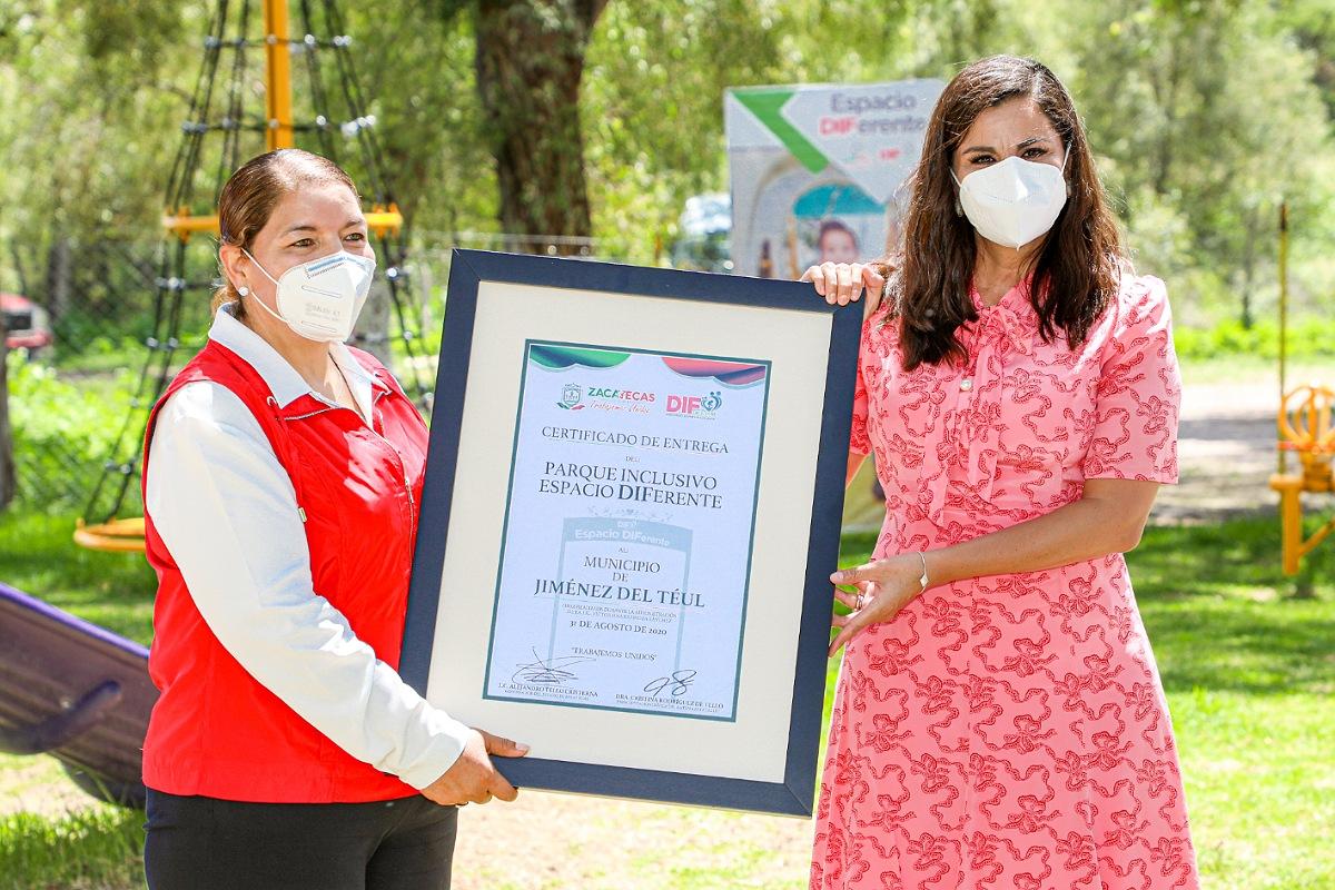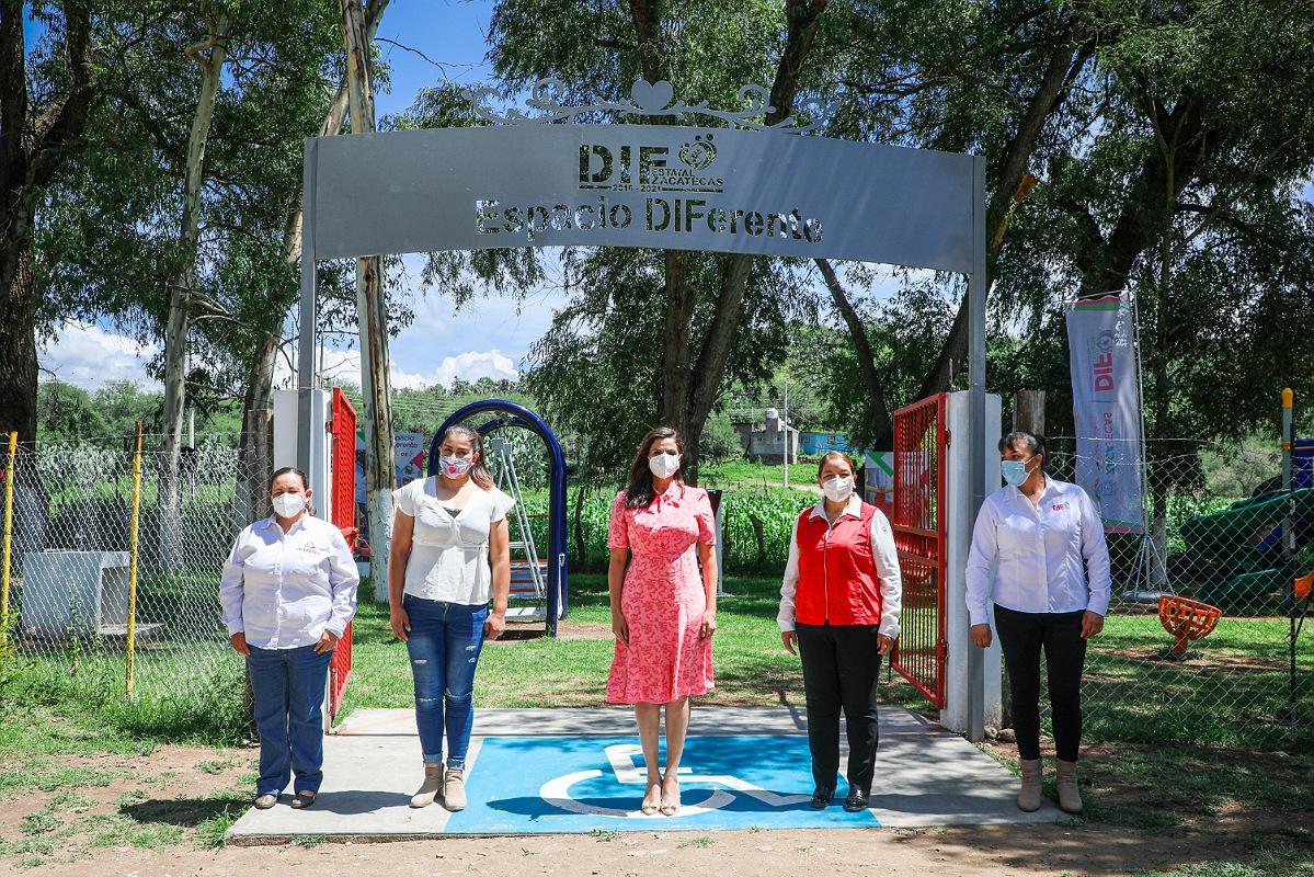 Jiménez del Teul, Zac.-El Gobierno de Zacatecas, a través del Sistema Estatal para el Desarrollo Integral de la Familia (SEDIF) entregó en la cabecera municipal de esta demarcación, el octavo de 10 espacios DIFerentes (parques inclusivos) construidos en el estado.
