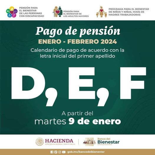 ¡Tu apoyo bimestral está listo! Si tu apellido paterno inicia con la letra «D», «E» o «F» y eres beneficiaria o beneficiario de:- #PensiónAdultoMayor– #PensiónDiscapacidad– Niñas y Niños, Hijos de #MadresTrabajadoras