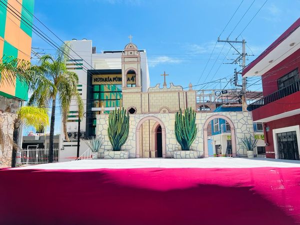 Se está llevando a cabo la XXVIII Semana Cultural, por lo que se montó un escenario el cual representa el Santuario de Jalpa, lugar icónico del municipio.