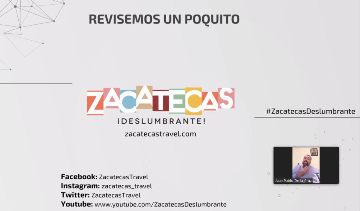 Eduardo Yarto, secretario de Turismo, invitó a las dos últimas capacitaciones de esta segunda temporada, que están relacionadas con el aprovechamiento del patrimonio y las oportunidades que vienen. Los temas serán impartidos por una docente de la Universidad Anáhuac y el titular de la Secturz, el lunes 25 y el jueves 28 de mayo de este año, a las 11:30 horas a través de la plataforma digital Zoom. Más información sobre el acceso está en las redes sociales de Facebook Zacatecas Sectur y Twitter @ZacatecasSectur, así como a través de WhatsApp 492 179-70-87.