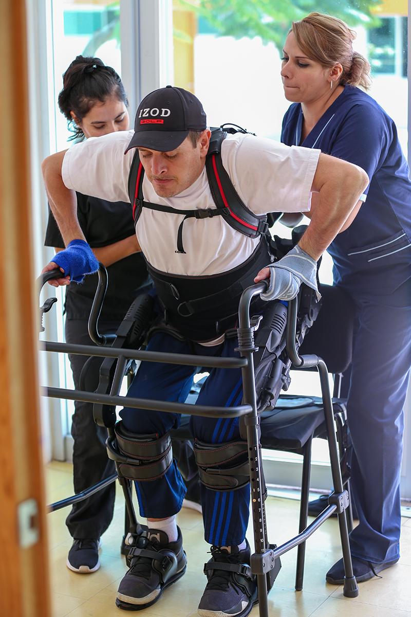 El otro tipo de paciente es para lesiones altas (cervicales), como es el caso de Ulises, pero que son incompletas, es decir, que registra poco movimiento en miembros superiores, que con tratamiento mejora también el sistema digestivo y le da un plus a la parte emocional del paciente, al volver a levantarse y caminar.